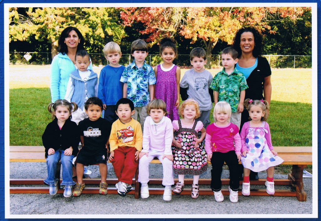 А вот и наша уже не очень новая садовская группа. Вчера, наконец, получили фото Ади и всей его честной компании. Справа от Ади стоит Джои (ровесник Ади), братик другого нашего дружбана по-имени Джесси (на годик старше нас), который стоит сразу после сияющей Сомы (ей три с половиной) в сиреневом сарафане. С мамой Джои и Джесси мы уже обменялись телефонами, потому что эти трое явно друг к другу не равнодушны, а уж смотря на то как они друг друга давят, свалившись все в кучу, мне вообще подумалось нехорошее, но Давид меня успокоил, что все мальчики так играют.